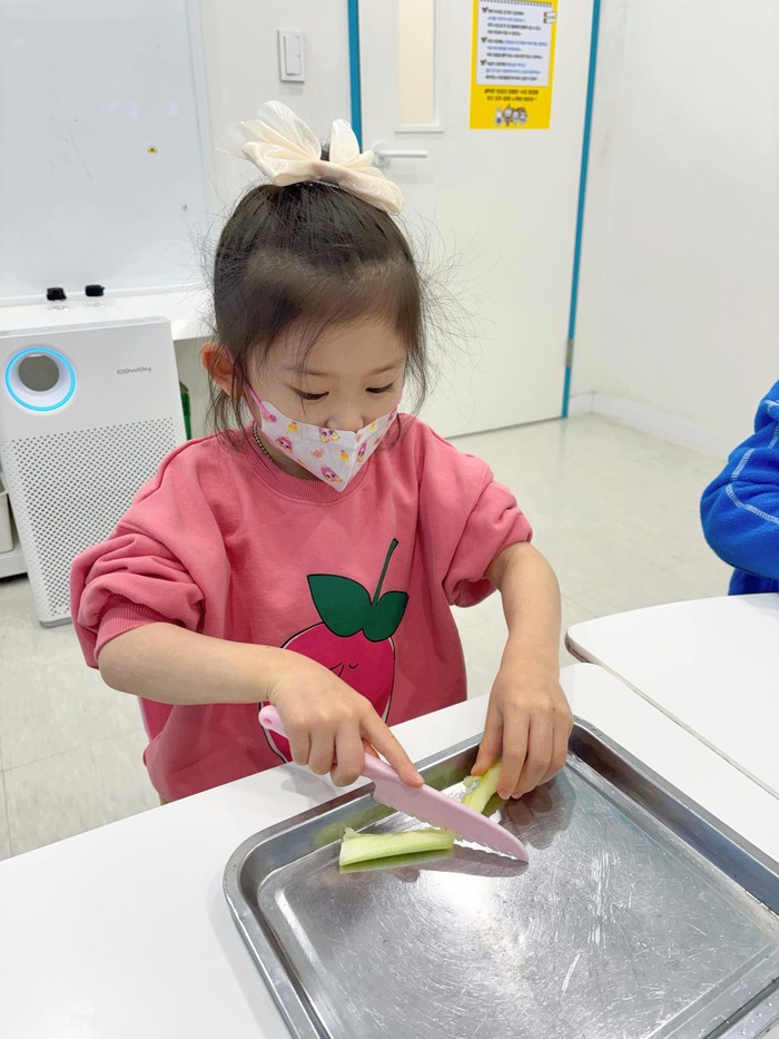 유아들이 스스로 조작하고 체험하는 활동을 중요하시하는 와이키즈의 구성주의 교수법은 전차칠판과 터치스크린으로 쌍방향 커뮤니케이션이 강화되도록 학습하고 있어요. 유아가 스스로 터치 스크린을 작동시킴으로써 재미와 학습효과가 더욱 증대된답니다.