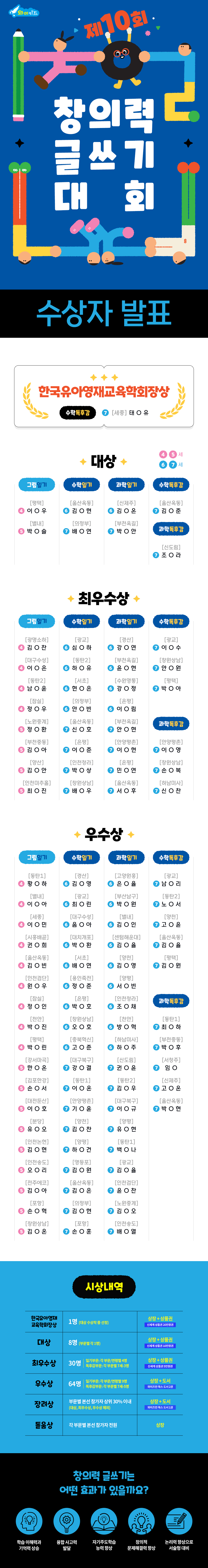 제10회 와이키즈 창의력 글쓰기 대회 수상자 목록(장려상, 돋움상).xlsx